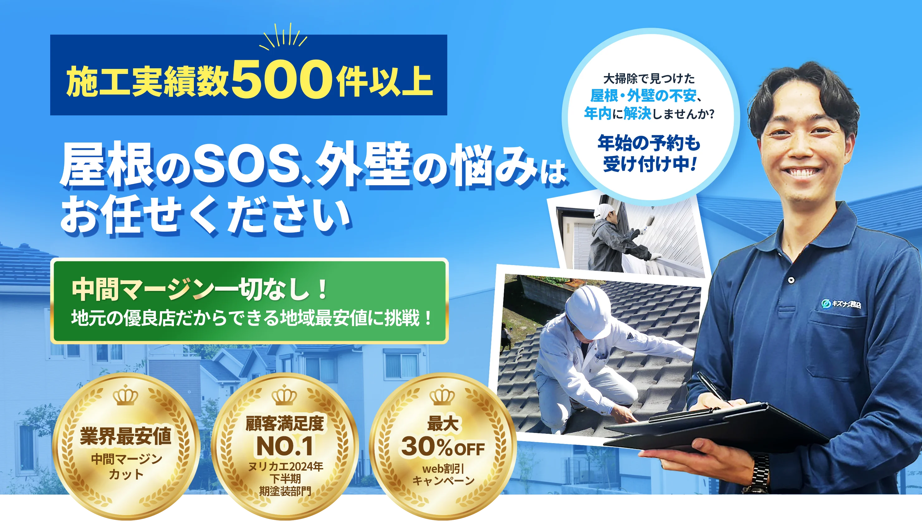 おかげさまで、これまでにご依頼いただいた多くのお客様から高いご評価をいただき、外壁塗装の口コミサイトにて「東京都でおすすめの外壁塗装会社 第1位」(2025年時点)として選ばれました。